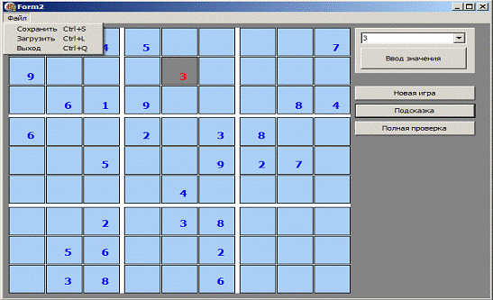 игра под названием судоку, реализованная в стиле объектно-ориентированного
