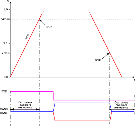 отключения от шины CAN-узлов, причем общее число узлов не лимитировано