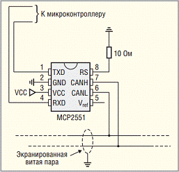 2.10 Схема подключения микроконтроллера к шине CAN с помощью