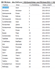 int;@#_chitatelskogo_bileta=@#_chitatelskogo_bileta,@ID_gruppy=ID_gruppy,@Familiya=Familiya,@Imya=Imya,@Otchestvo=Otchestvoinserted@count=COUNT(*)