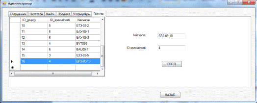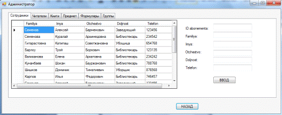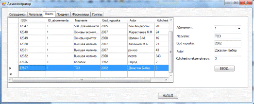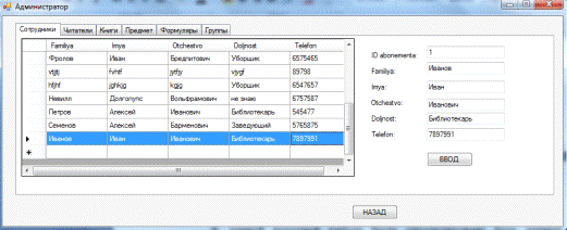 Приложение дает право директору изменять данные в таблицах, добавлять и