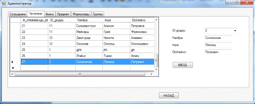 студентов(читателей), заводя на них формуляры, выдавая им комплекты книг и ведя