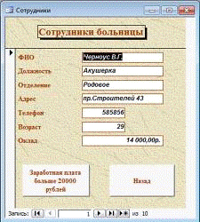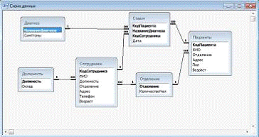 районной больницей, и база данных по сотрудникам, болезням пациентов и отделениях