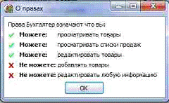 ShowMessage('Авторизация прошла успешно! Вы вошли с правами '+