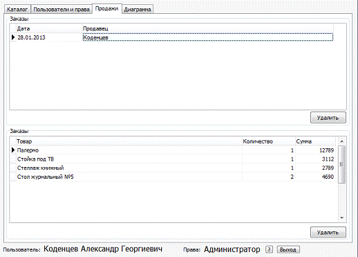 прав, и содержат в себе информацию об Совершенных заказах, и Диаграмма