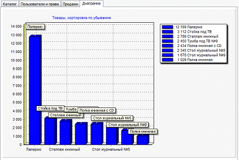 Вкладки «Продажи» и «Диаграмма» доступны, при наличии соответствующих