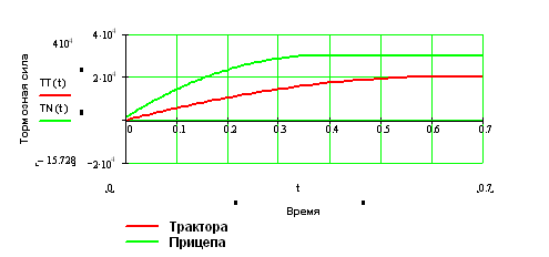 изменение усилия в тягово-сцепном устройстве при торможении тракторного поезда