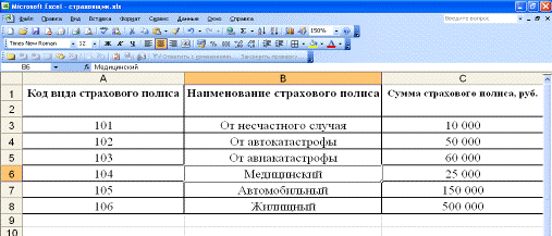. Заполнить графу Наименование полиса таблицы