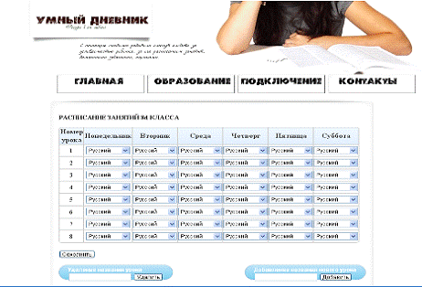 добавлять название предметов, изменять расписание, делать записи в электронном