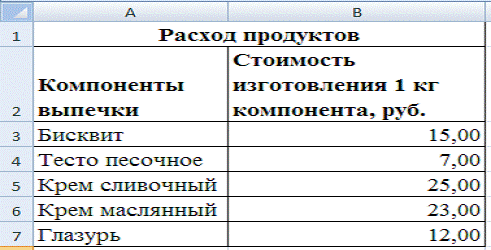 Рис. 1 - Расположение таблицы «Расход продуктов»