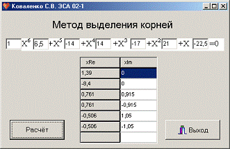 1. Решения алгебраических уравнений методом выделения корней