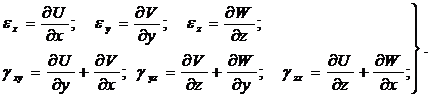 деформации этого тела. Обозначим U,V,W проекции полного перемещения некоторой