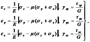 для остальных плоскостей углы сдвига γ yz (или γ zy) и γ zx (или γ xz). При