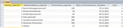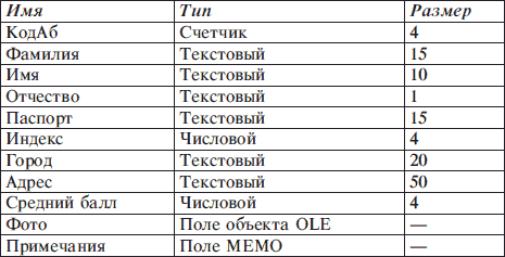 Создать в MS Access базу данных заданной структуры.
