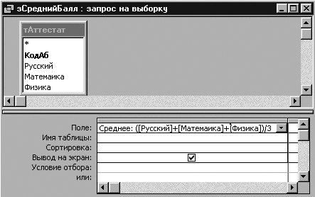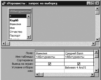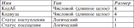 Таблица Абитуриенты: