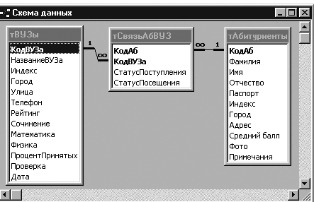 таблицы тСвязь-Абвузы они являются чужими ключами.