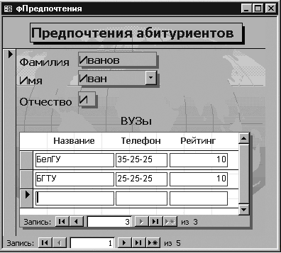 связей между таблицами. Создание запросов, форм, отчетов