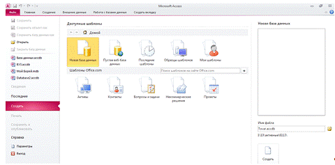 После нажатия кнопки Создать Access создаст