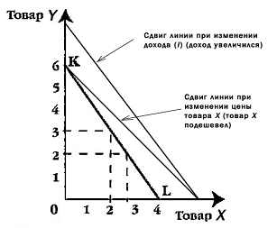 дохода потребителя (I), бюджетная линия может сдвигаться параллельно старой
