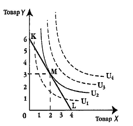 перемещаясь по прямой KL, будет стремиться к точке М (бюджетная линия KL
