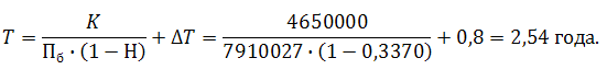 Срок окупаемости капитальных вложений, годы.
