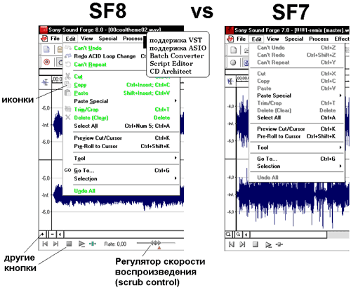 Если сравнивать 8-ю и 7-ю версии, то стоит отметить, что Sound Forge 8