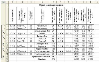 Рис. 7. «Журнал регистрации кредитов». Итоги