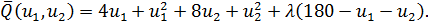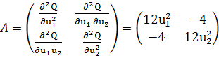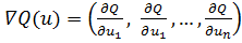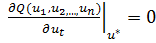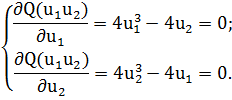 зависимости оптимизируемой функции Q от независимых переменных uι.