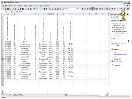 4. На рабочем листе ОС MS Excel создать таблицу список ОС организации.