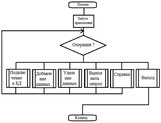 алгоритм программы показывает команды основного окна. Схема данного алгоритма