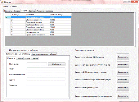 = new DataSet();comm5 = new SqlCommand («SELECT MAX([Stoimost uslugi]) FROM