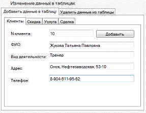 // Добавляем данные в таблицу Сделка