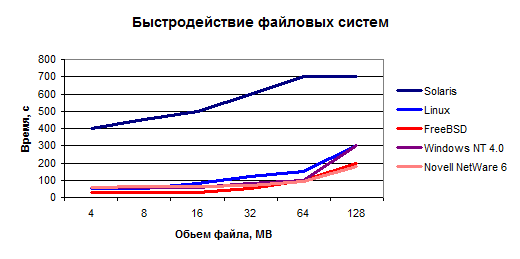 времени). Для измерения эффективности файловой системы размер файла был увеличен
