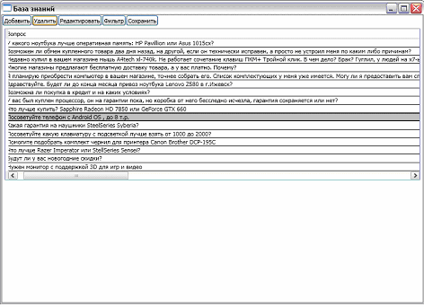 базами знаний, предусмотреть возможность редактирования, удаления, добавления