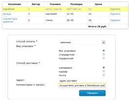 вид упаковки, способ оплаты, способ доставки (выпадающие списки).