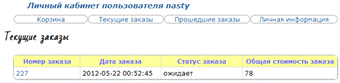 При переходе по ссылке на пункт меню «заказы»