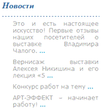 «Арт-эффект» содержит такие информационные блоки как статьи и новости.