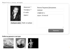 занесении данных о новой работе в галерею открывается форма, содержащая