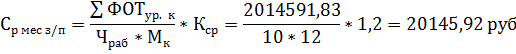 заработной платы промышленно-производственного персонала участка и величины их