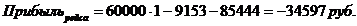 величина прибыли судна за рейс составила -34597 рублей, предприятие