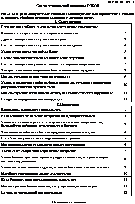 отношения к болезни (ТОБОЛ). Анкетирование пациентов (рейтинговые оценки