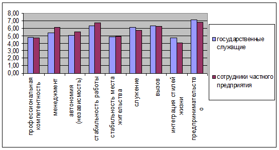 3.1.4 Сравнительный анализ показателей карьерных ориентаций