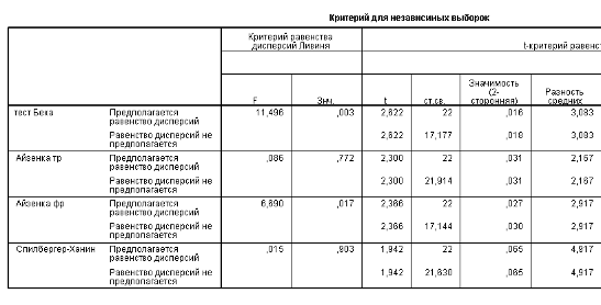 .3.1 Шкала депрессии Э. Бека (Э.