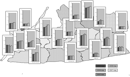 городов и районов в 2004 - 2007гг. Статистический сборник//Территориальный