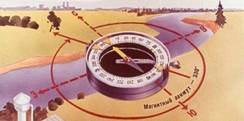 за тем, чтобы отсчет по компасу против северного конца магнитной стрелки был