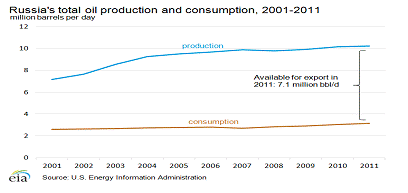 т.к. доля России в мировом производстве нефти более 12%, природного газа около