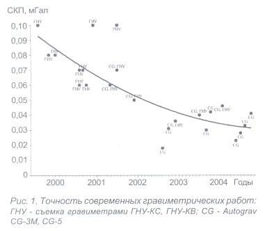 гравиметрических пунктов с погрешностью несколько миллиметров.
