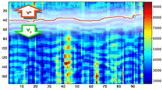 скважиной зона делиться на низко- и высокоскоростную части по 60-му отсчету.
