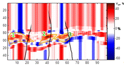Хорошо видны низкоскоростные аномалии, и контрастная горизонтальная граница