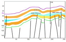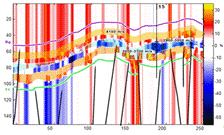 Рис. 4.24 Участок временного разреза 98-21 (CDP: 320-500, SP: 260 425)